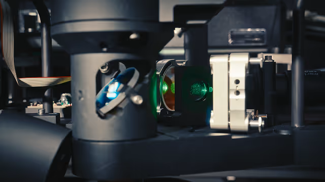 The QDm.1 is a wide-field quantum diamond microscope that illuminates and collects information from the whole FoV simultaenously.